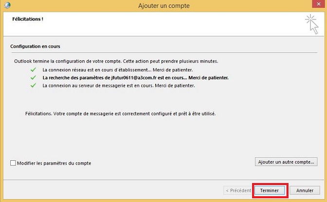 Votre compte a été configuré, cliquez sur "Terminer"